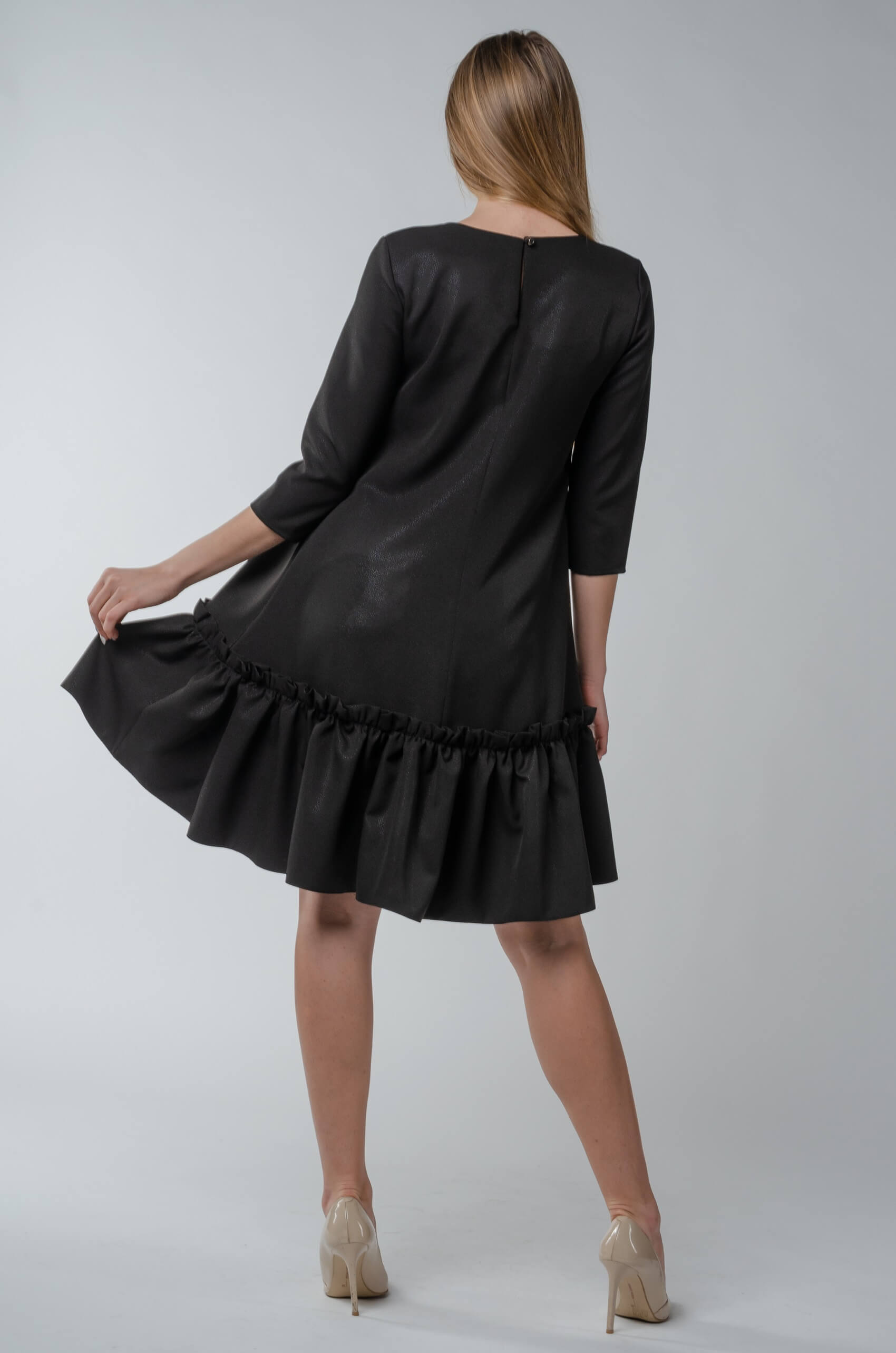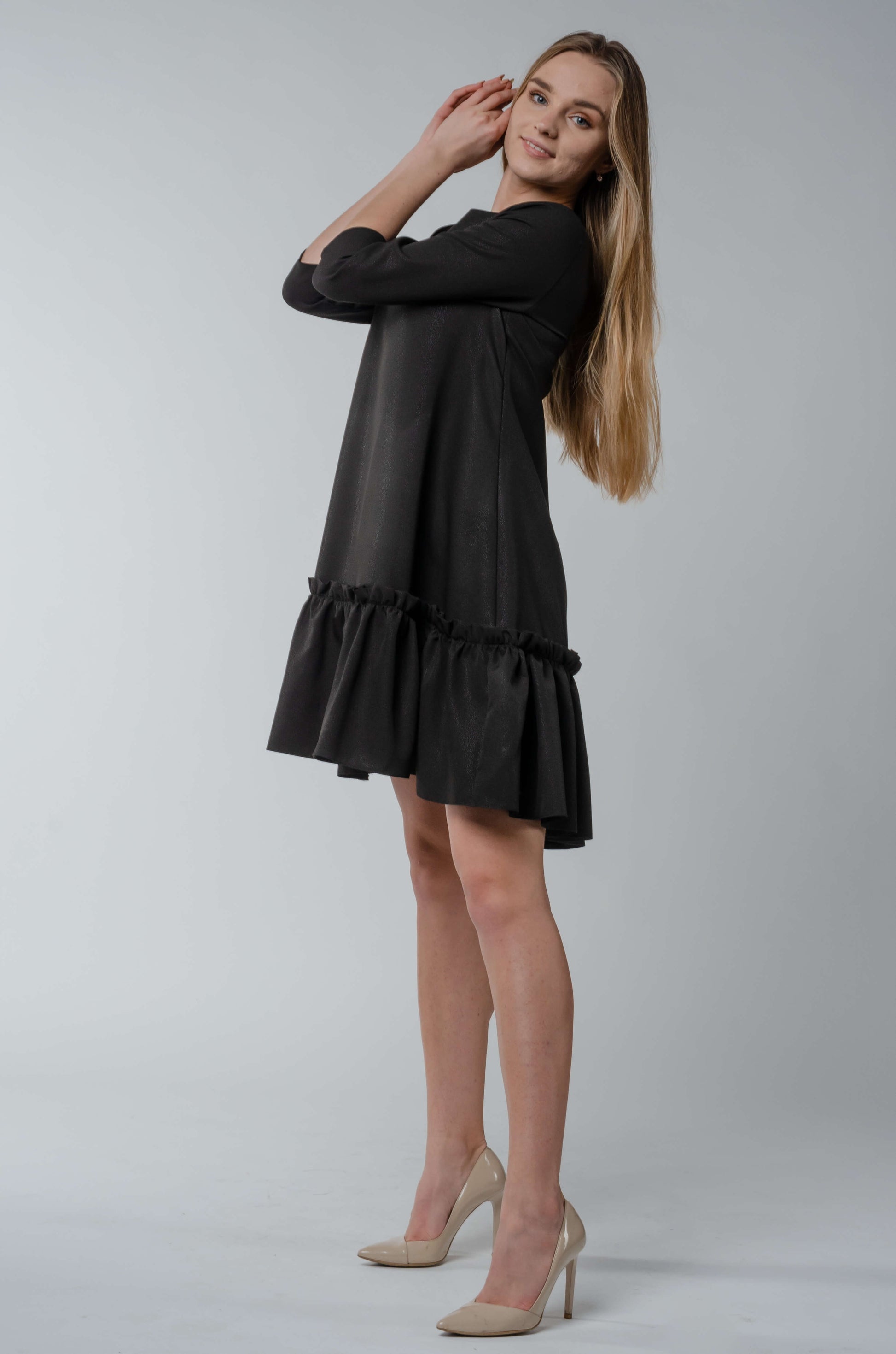 Ta sukienka to idea elegancji bez nadmiaru. Prosty, czysty trapezowy krój litery A daje lekkość, przestrzeń i tę niewymuszoną klasę, która zawsze wygląda drogo i ponadczasowo. Zabudowany dekolt w łódkę pozwala założyć ją nawet na najbardziej oficjalne okazje — kolacje, eventy firmowe, spotkania rodzinne, premiery, konferencje, uroczystości. Dół wykończony falbaną dodaje kobiecego ruchu i subtelnej miękkości. To jest sukienka, która nie potrzebuje ekstrawagancji, aby robić efekt “she’s the elegant one”.