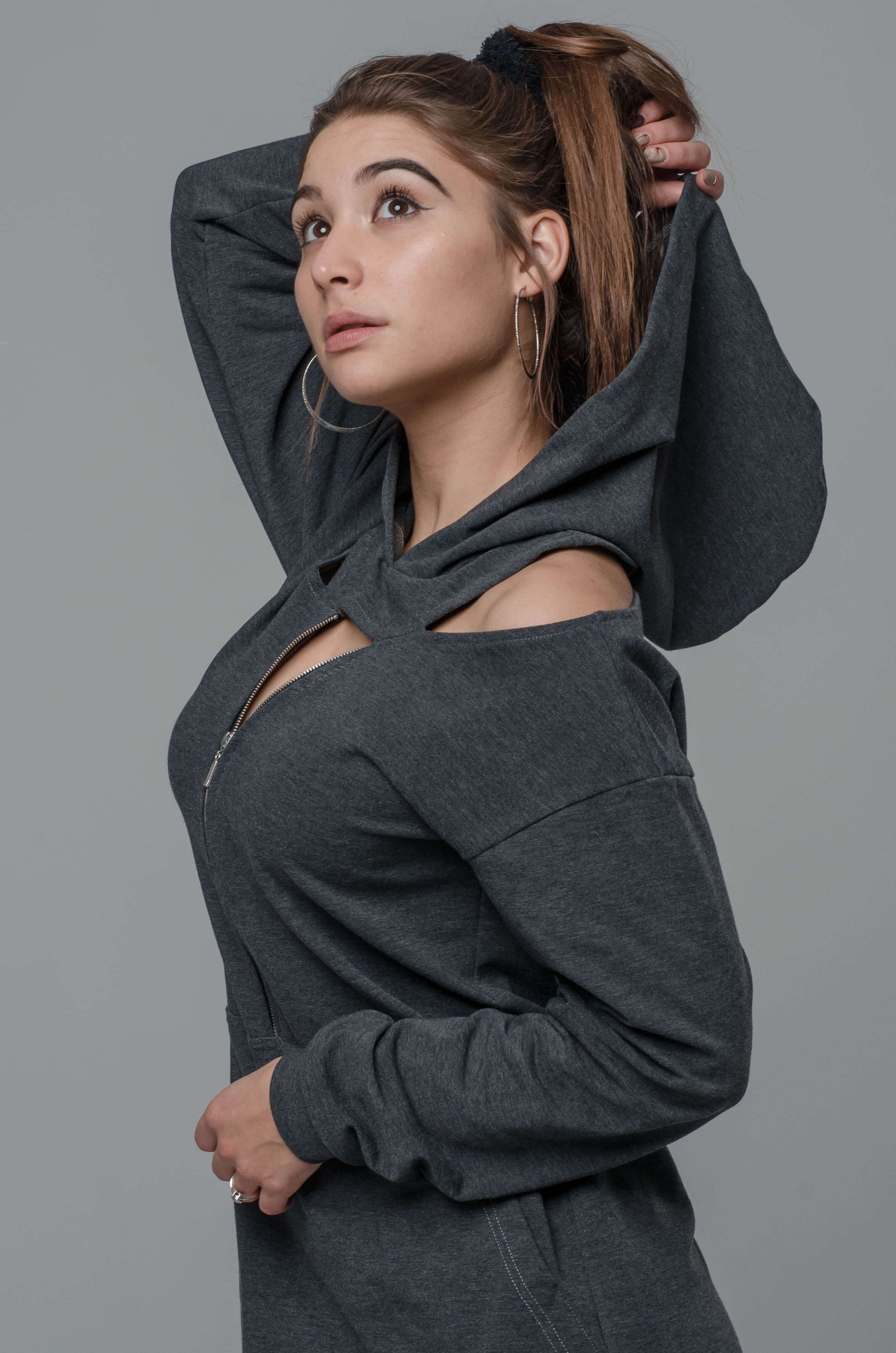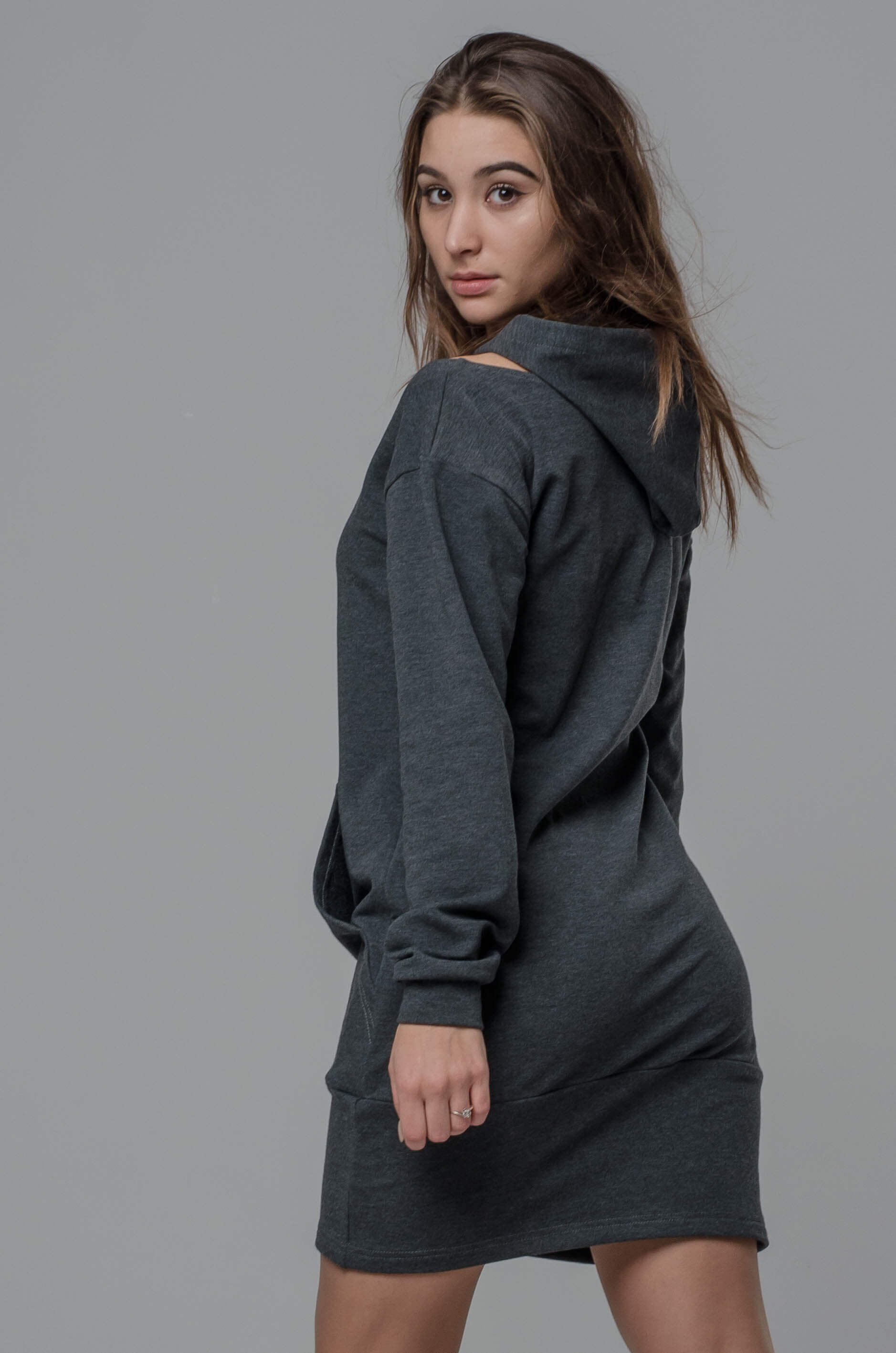 Dresowa sukienka z kapturem i metalowym zamkiem szara S41