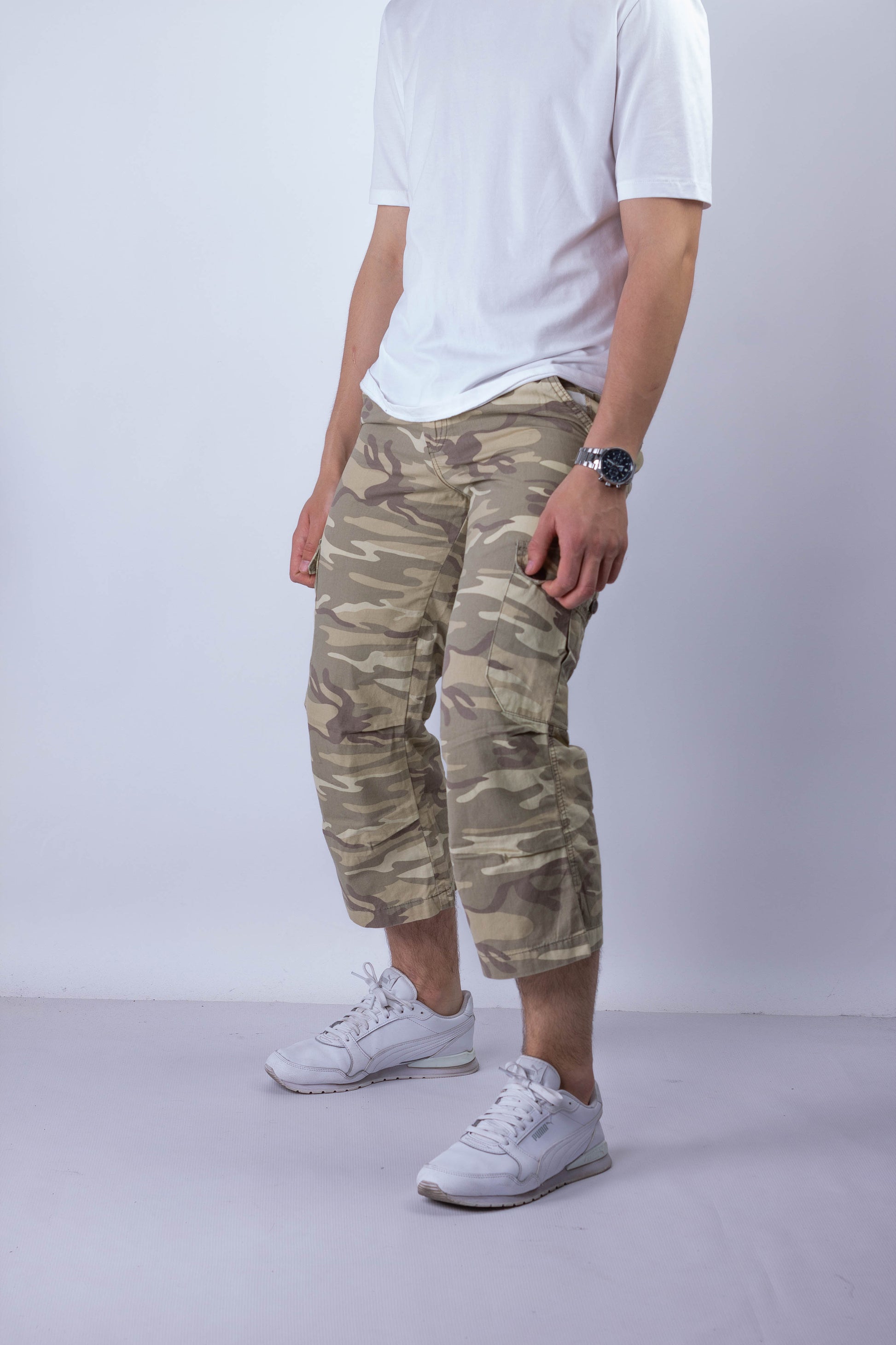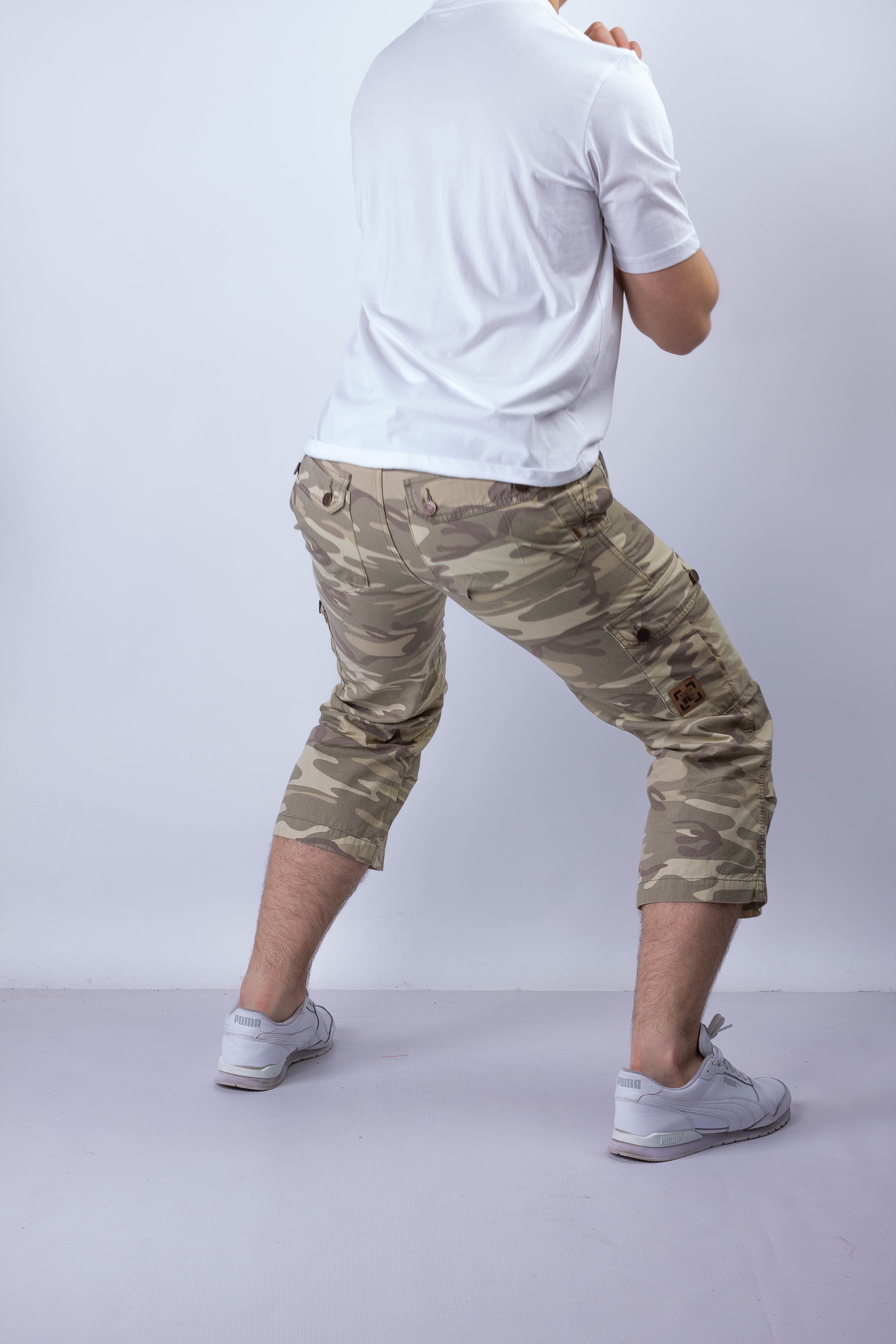 Ich skrócona długość do łydki nadaje im letniego charakteru, a wzór moro podkreśla dynamiczny, męski styl.