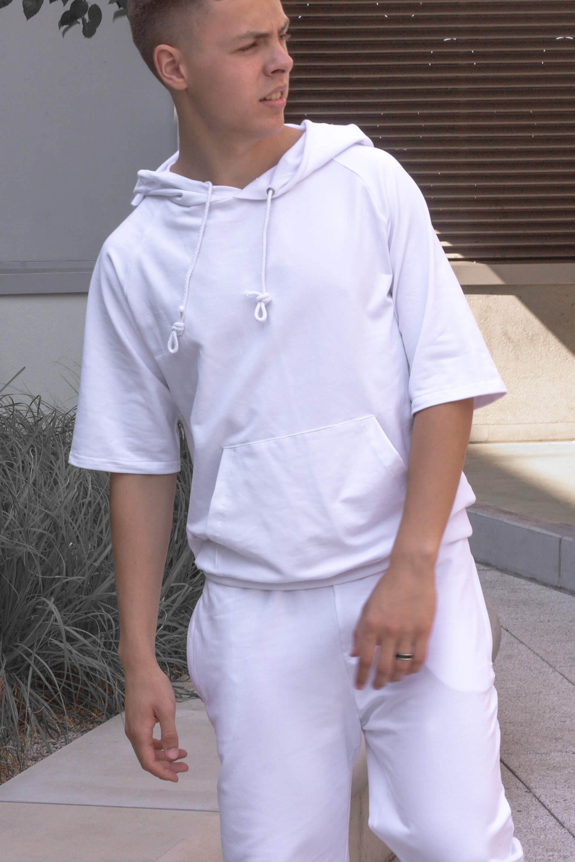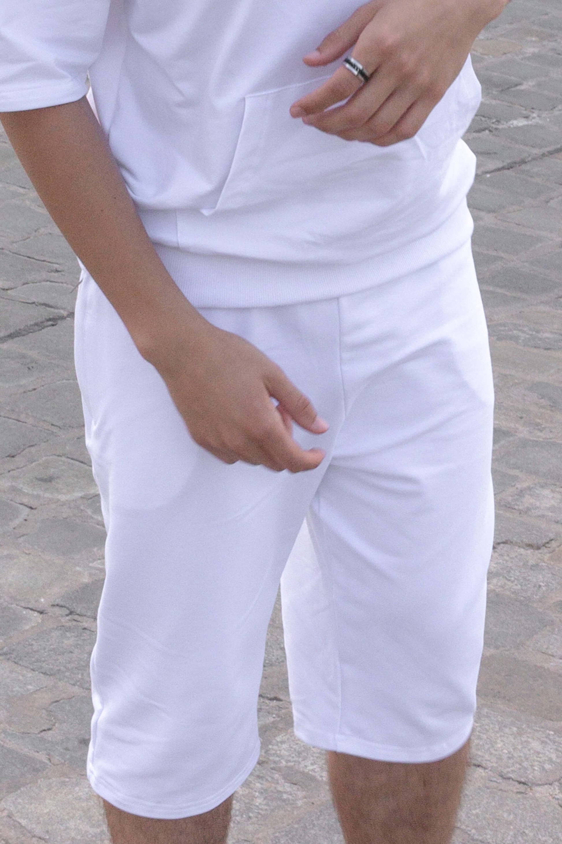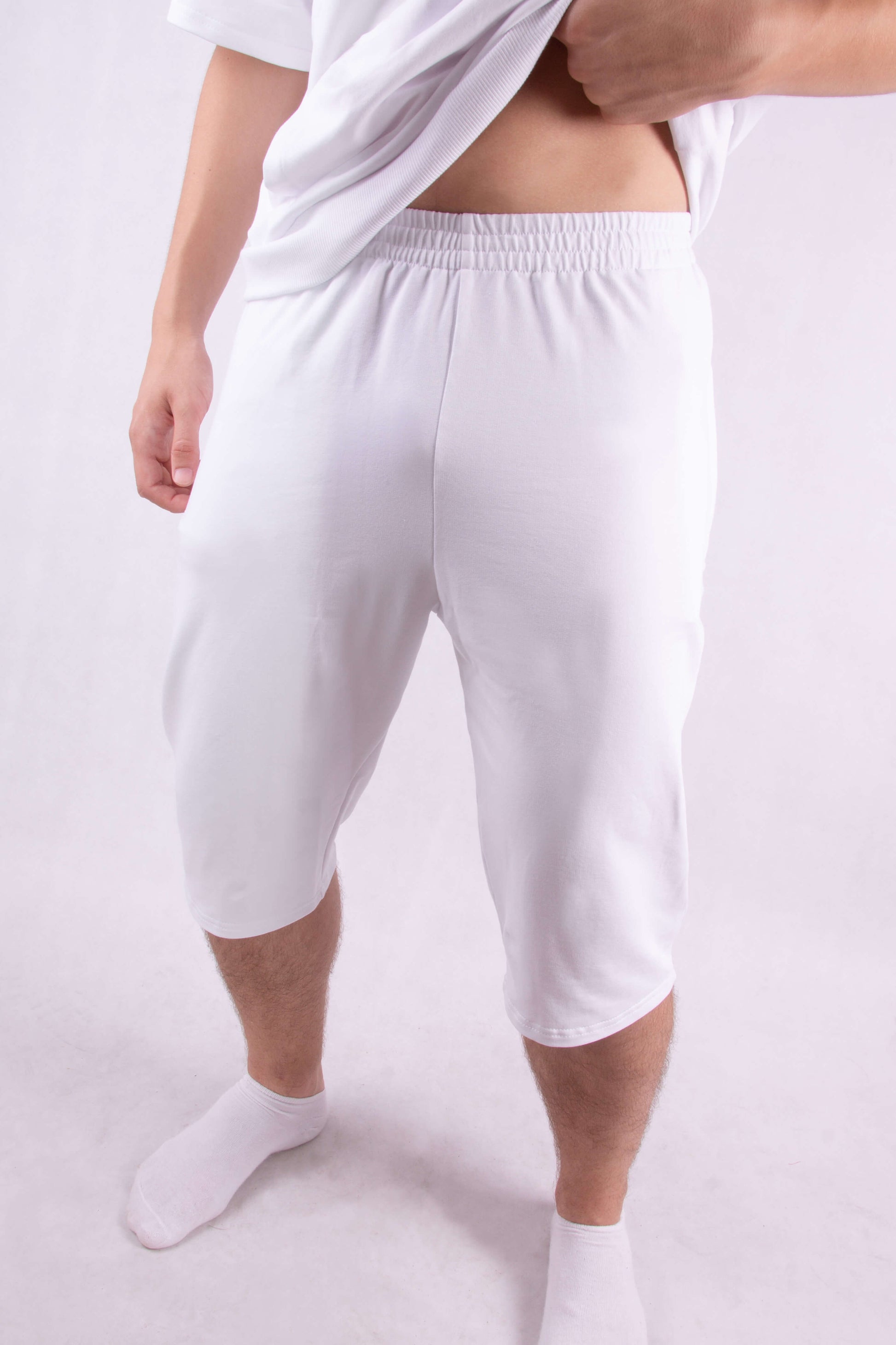 Opis produktu – Spodenki męskie dresowe białe za kolano