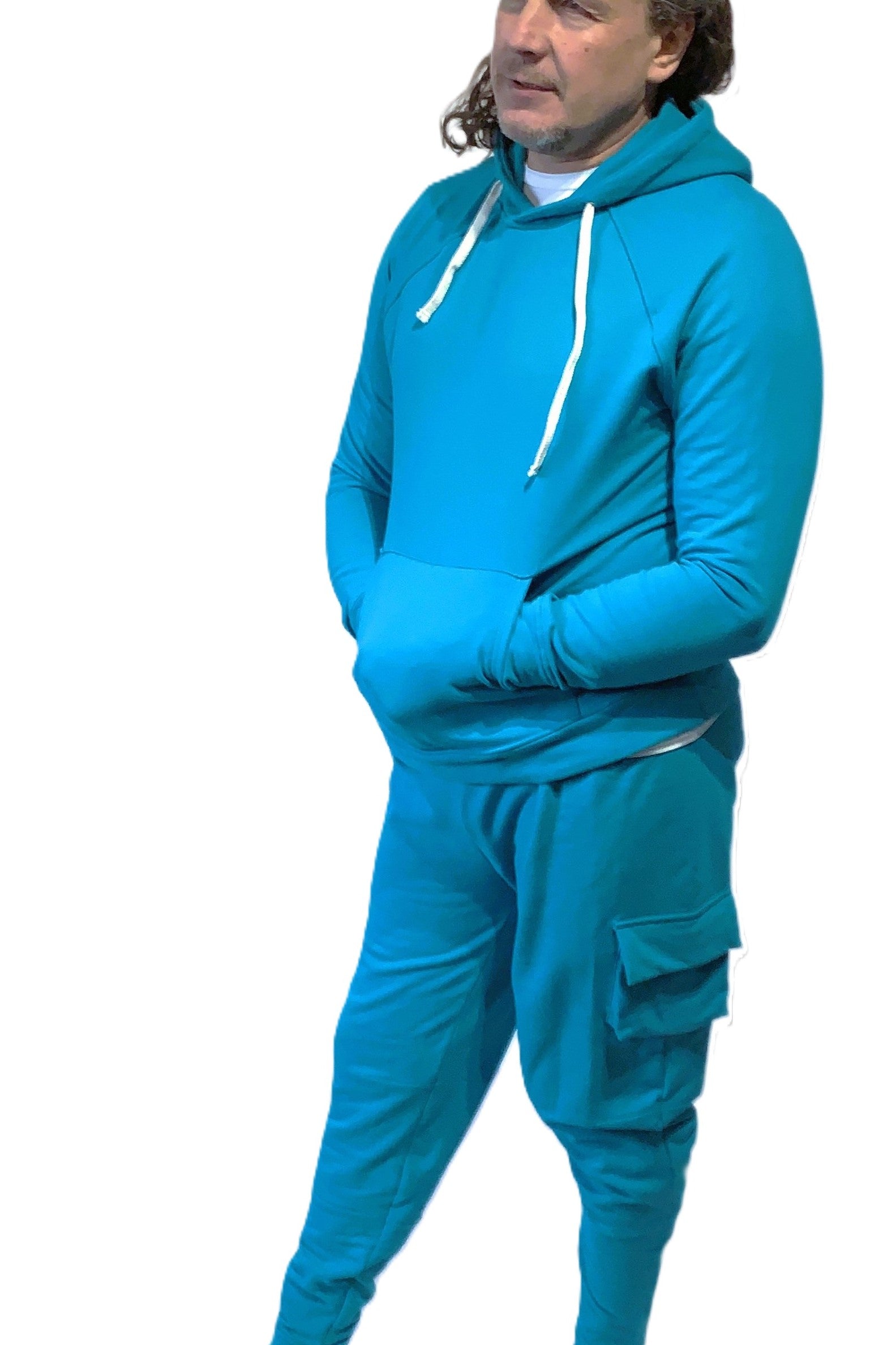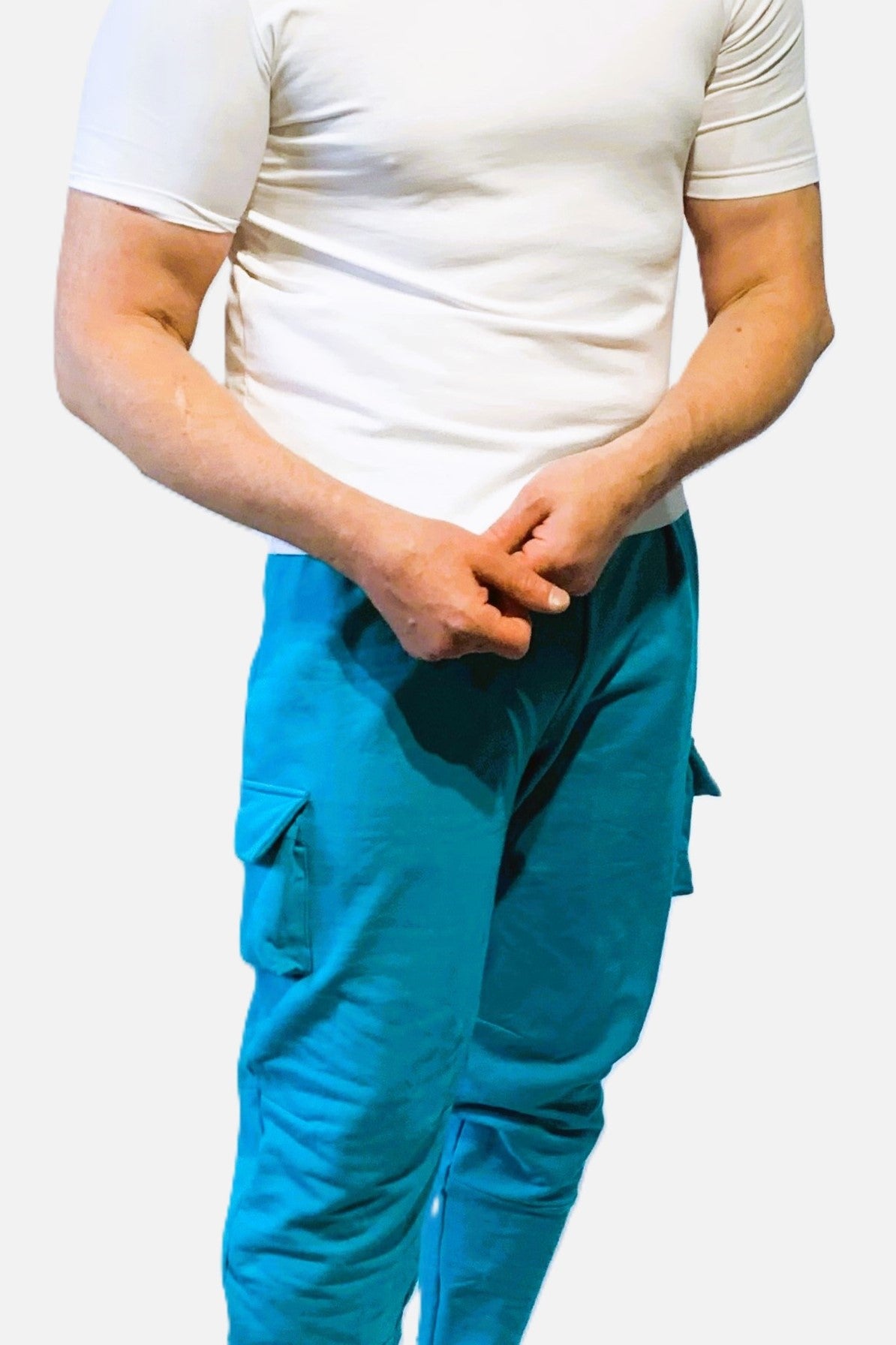 Te niebieskie spodnie dresowe bojówki to idealne połączenie miejskiego luzu i praktycznych detali. Wykonane z miękkiego, przyjemnego w dotyku materiału dresowego, zapewniają maksymalny komfort przez cały dzień, a jednocześnie wyróżniają się modnym krojem i funkcjonalnością inspirowaną stylem cargo.