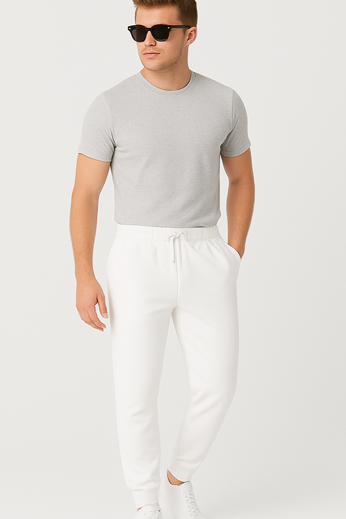 Spodnie Dresowe Joggers Męskie Białe W5203